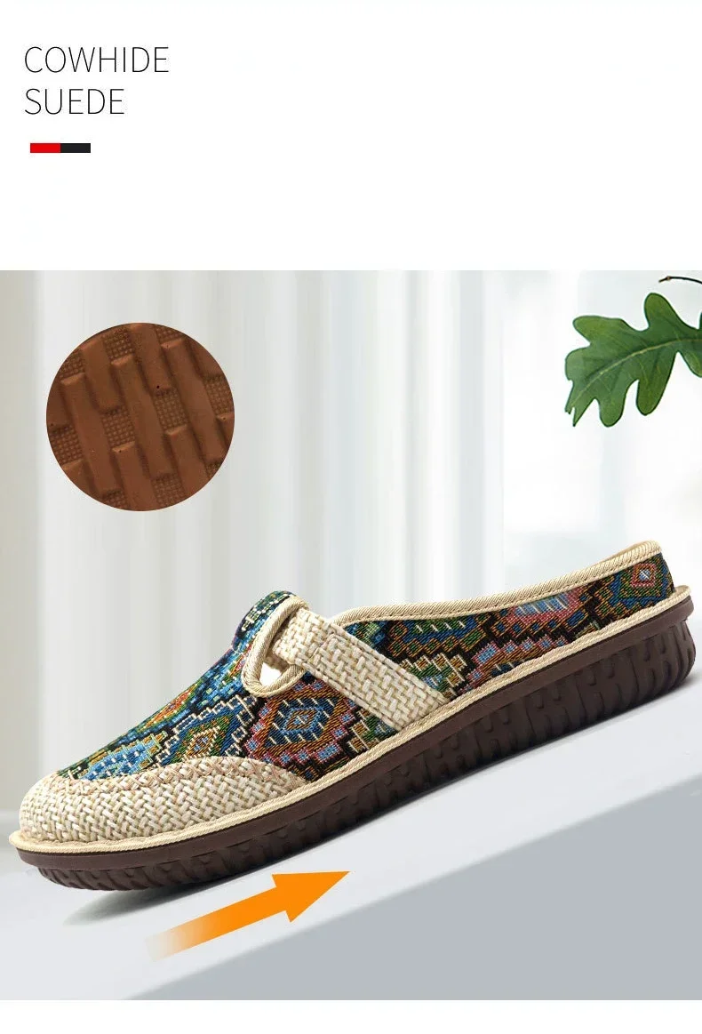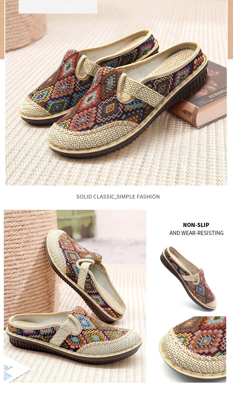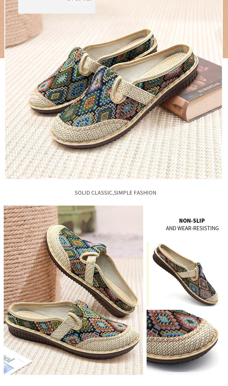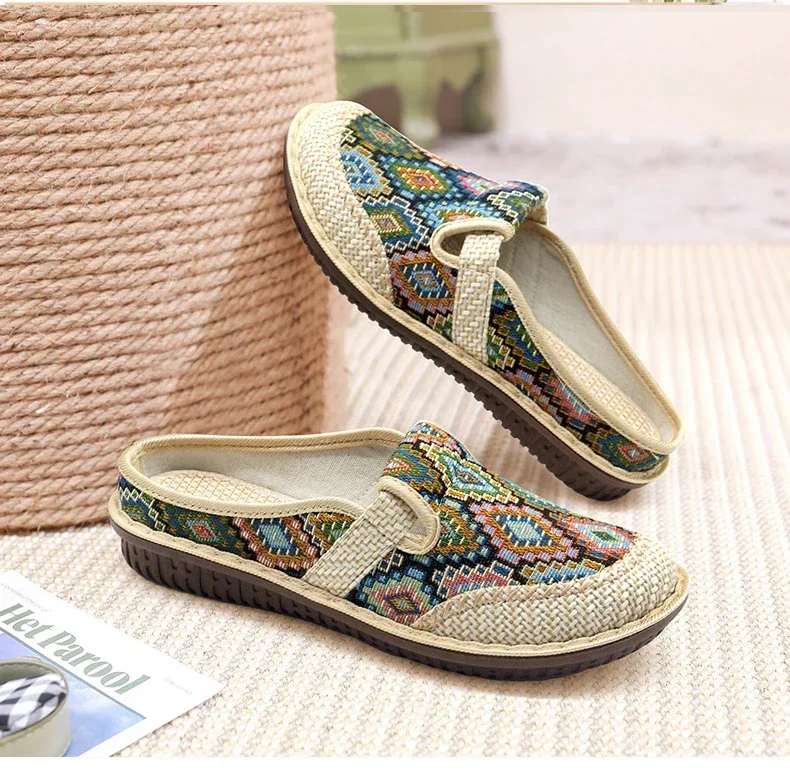Fashion Women's Shoes Ethnic Style Embroidered Linen Breathable Outdoor Casual Slippers Shoes for Women