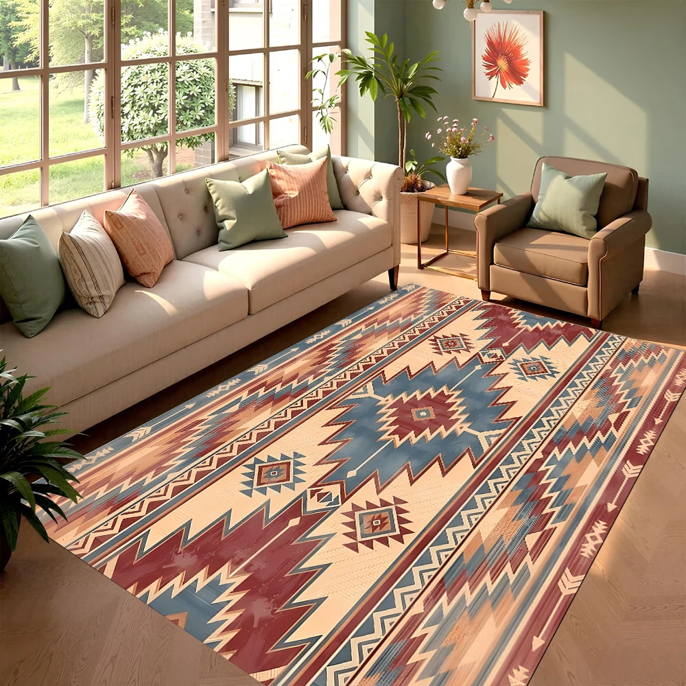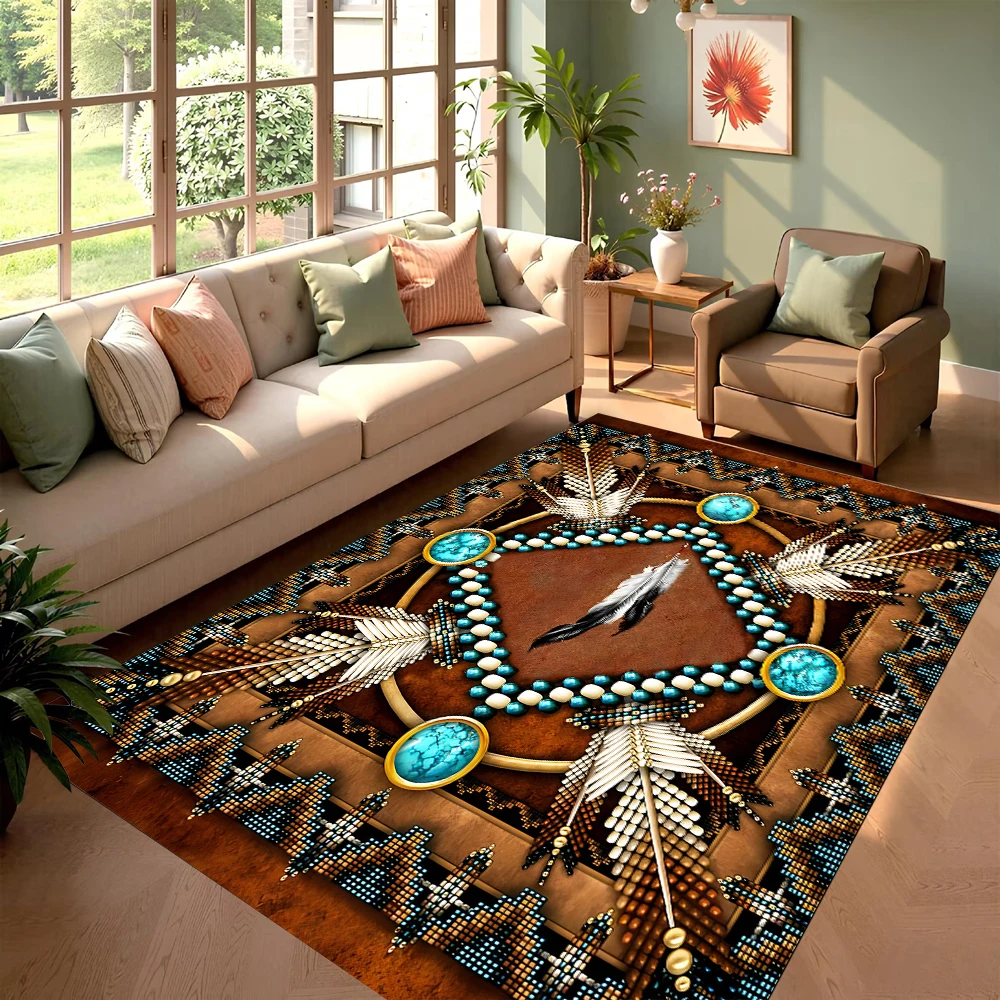 Native American Feather Style Rug Non Slip Soft Easy To Clean Fits Living Room Home Adds Ethnic Mystical Vibe To Cozy Space