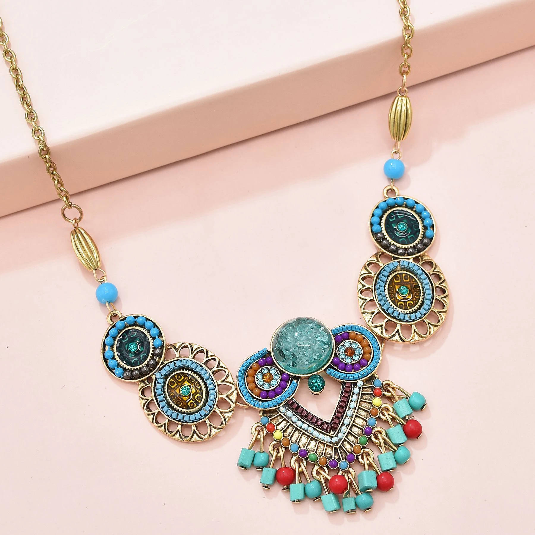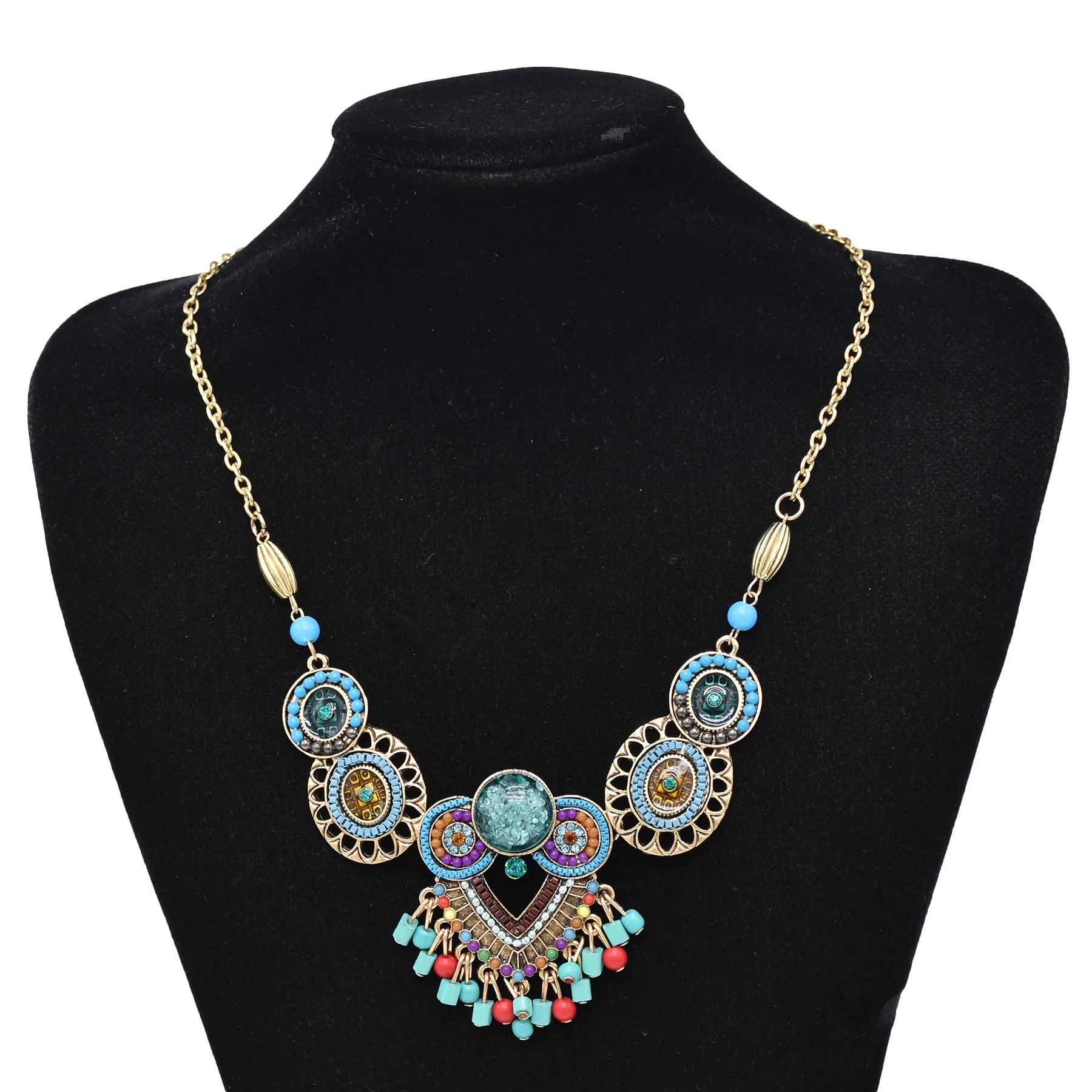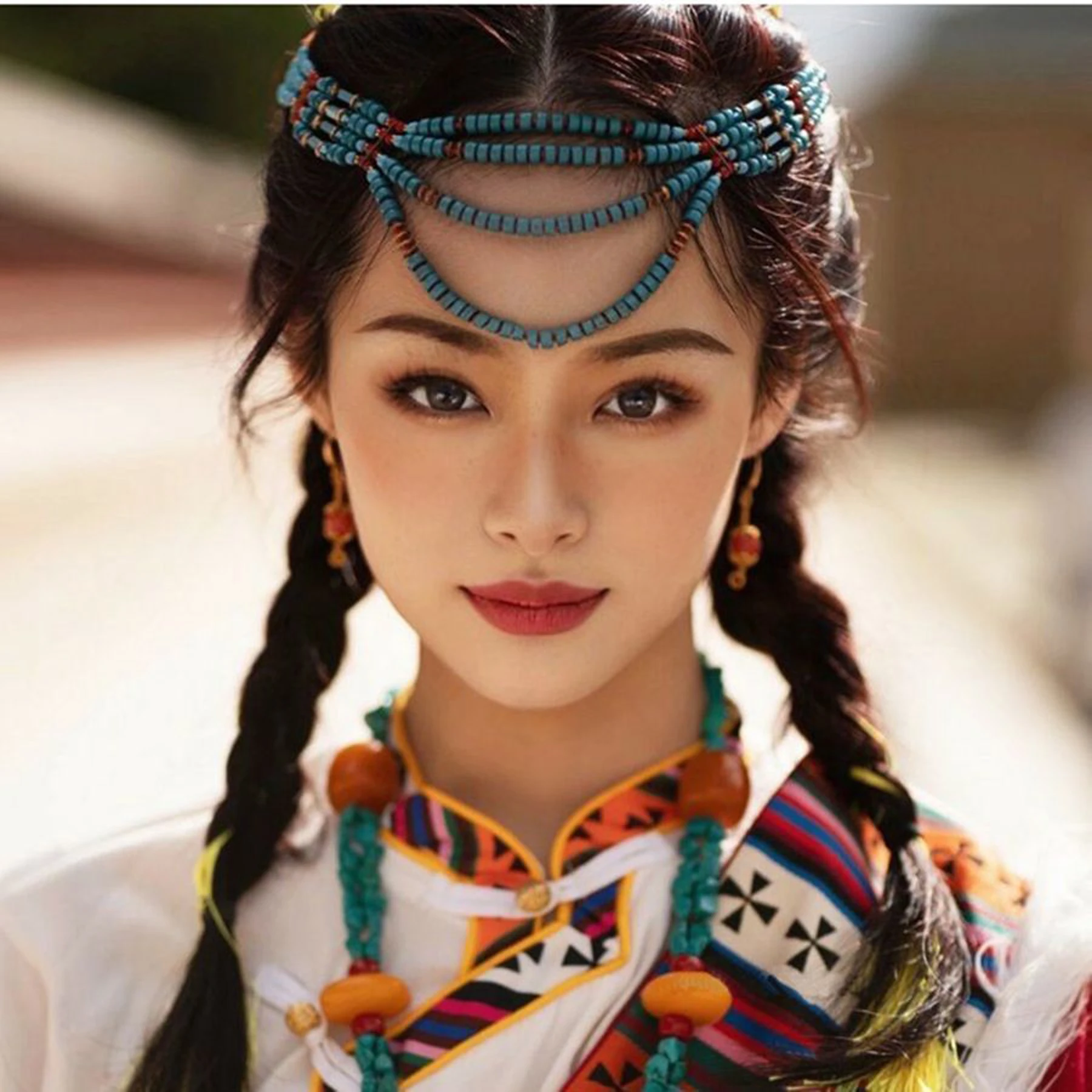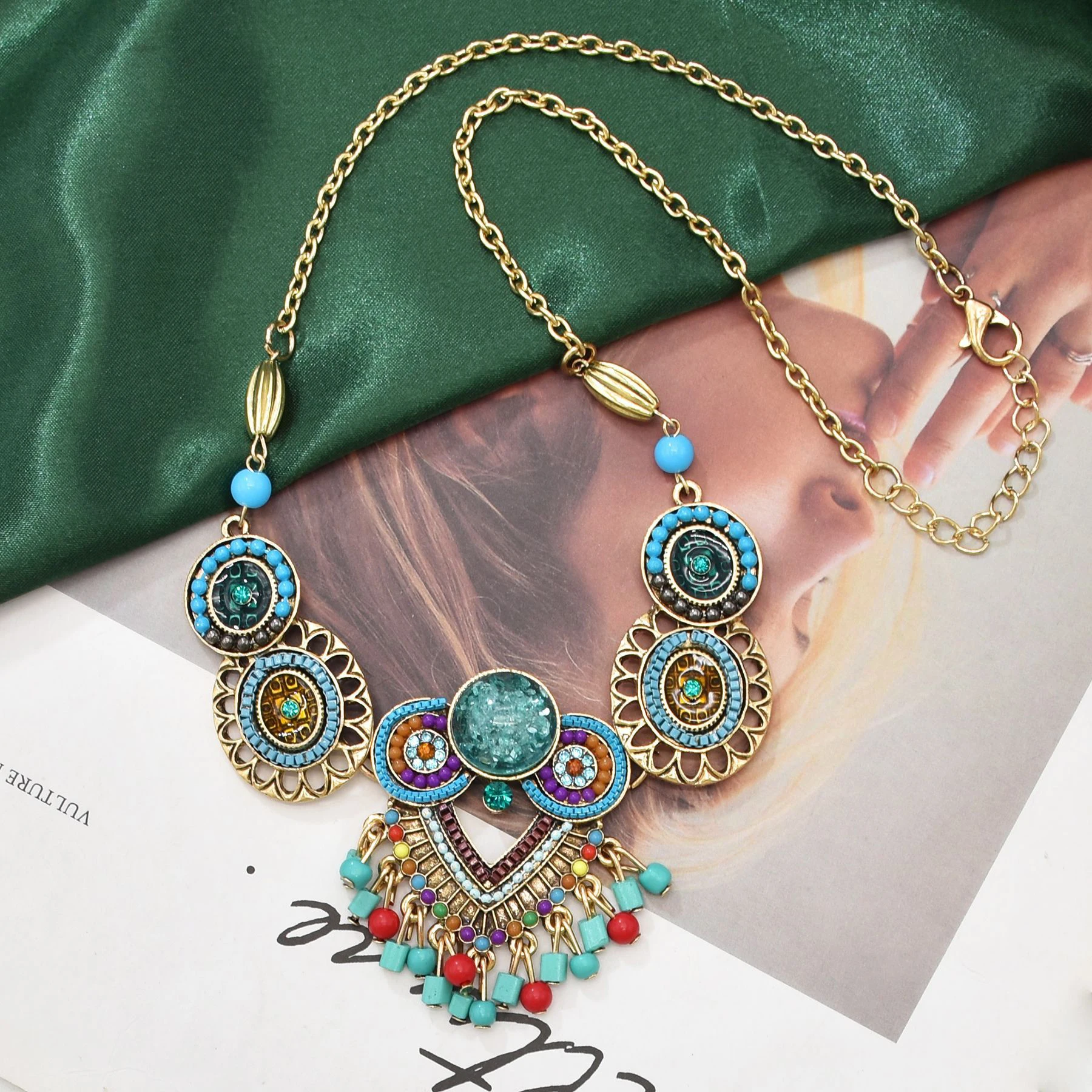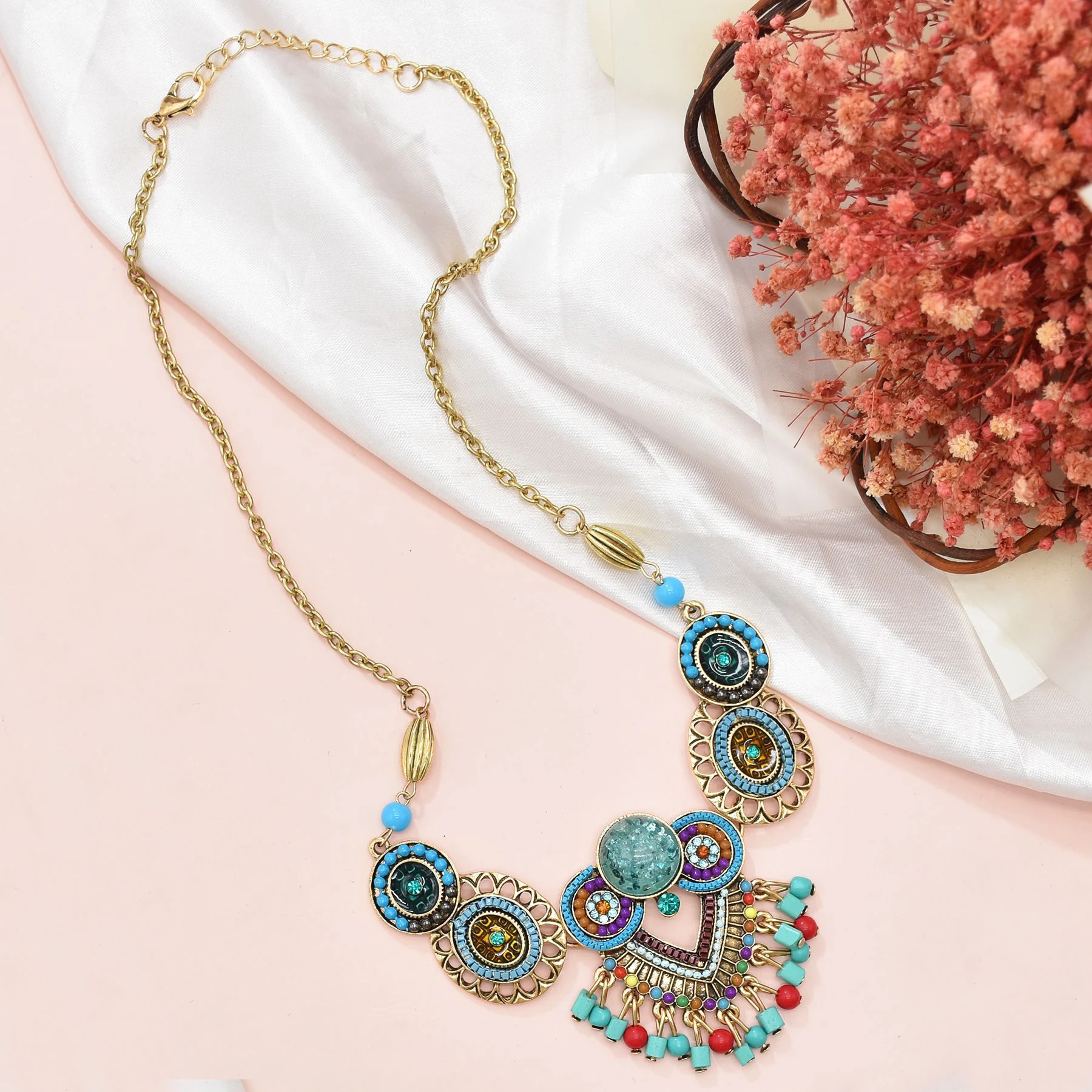 Vintage Turquoise Beaded Crystal Flower Headwear Necklace Earrings Exotic Bohemian Ethnic Bride Wedding Statement Jewelry Set