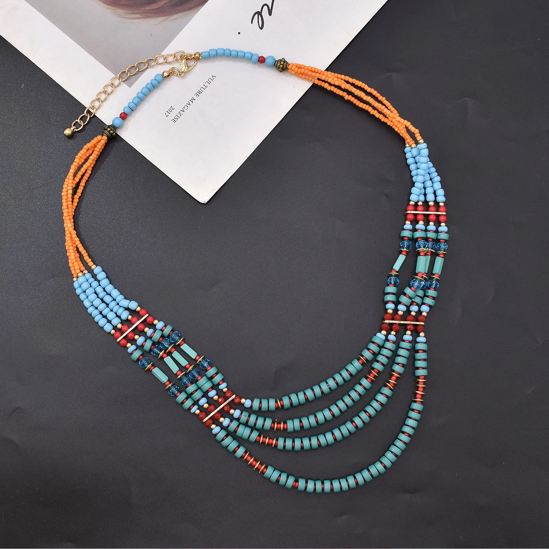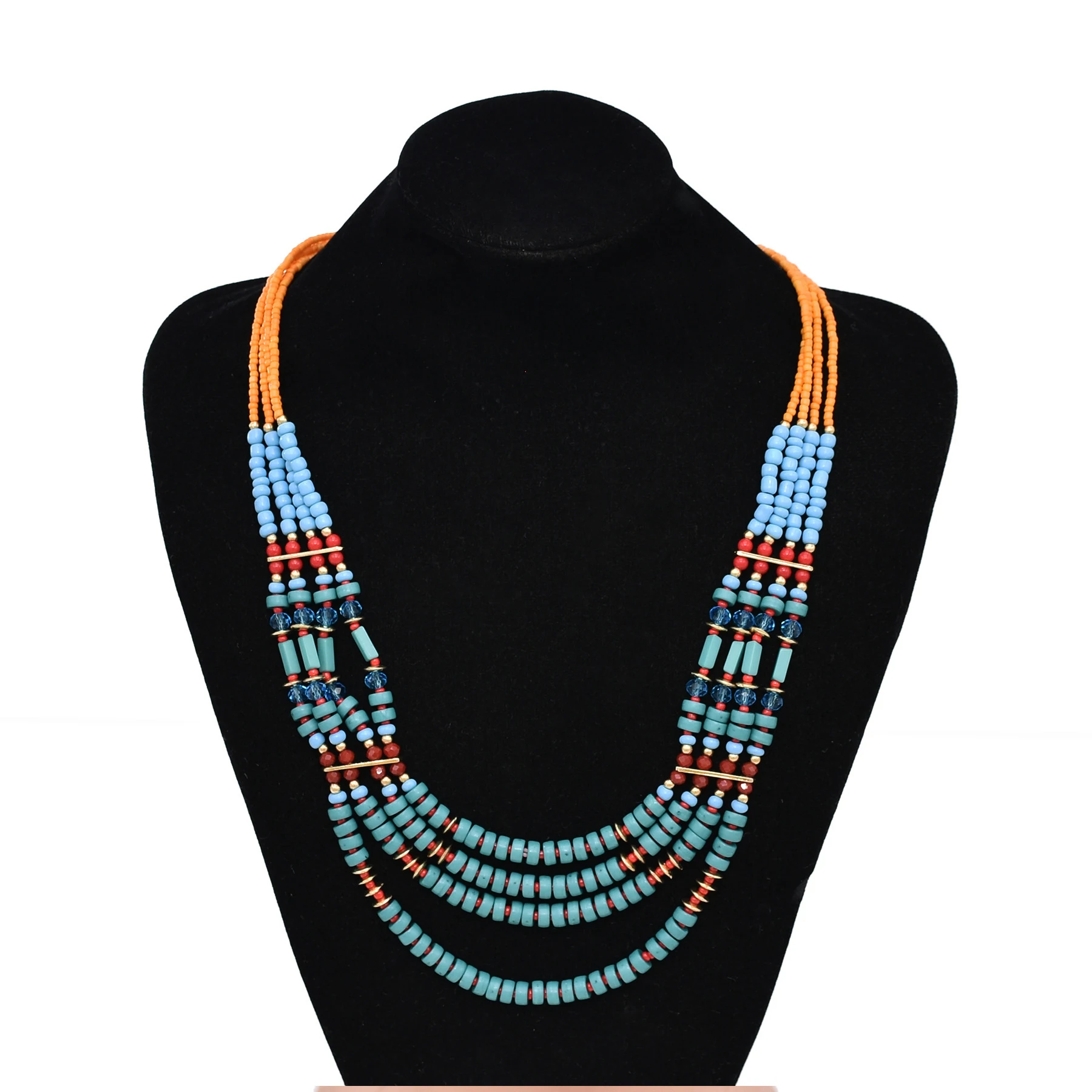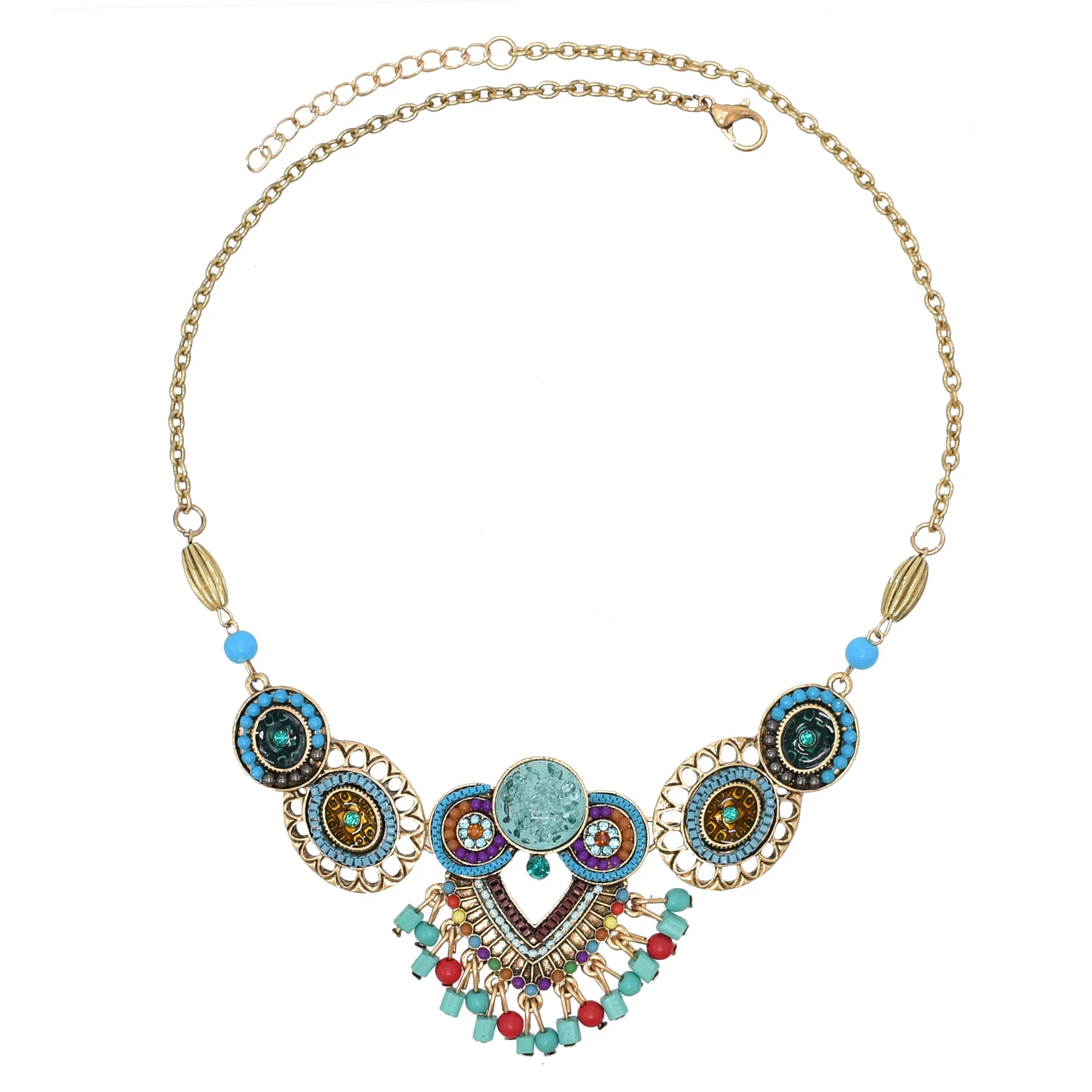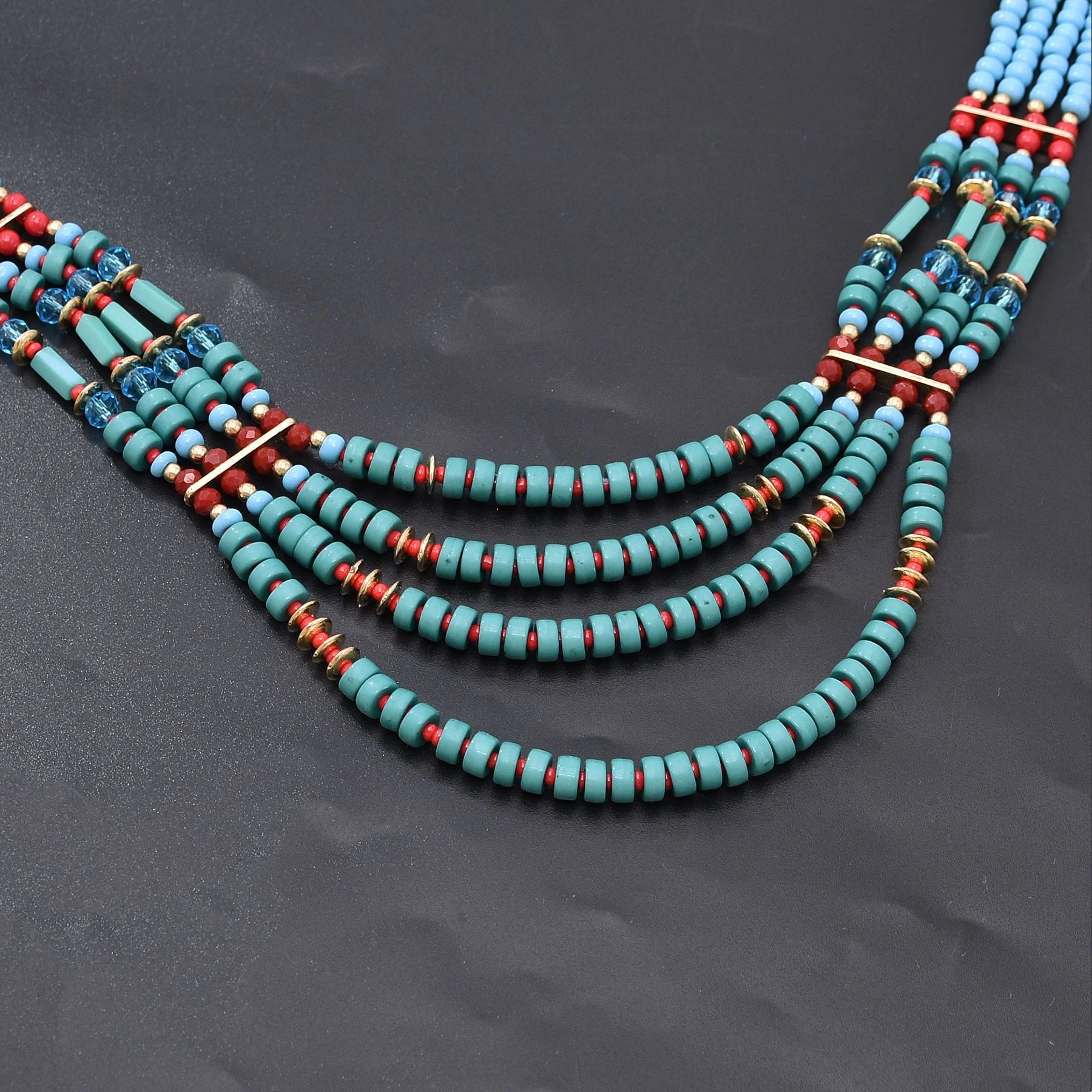 Vintage Turquoise Beaded Crystal Flower Headwear Necklace Earrings Exotic Bohemian Ethnic Bride Wedding Statement Jewelry Set