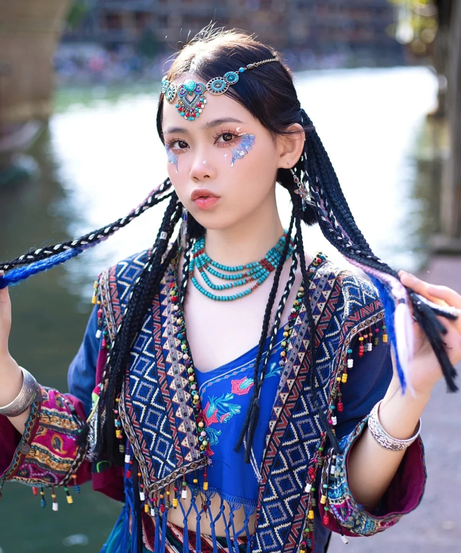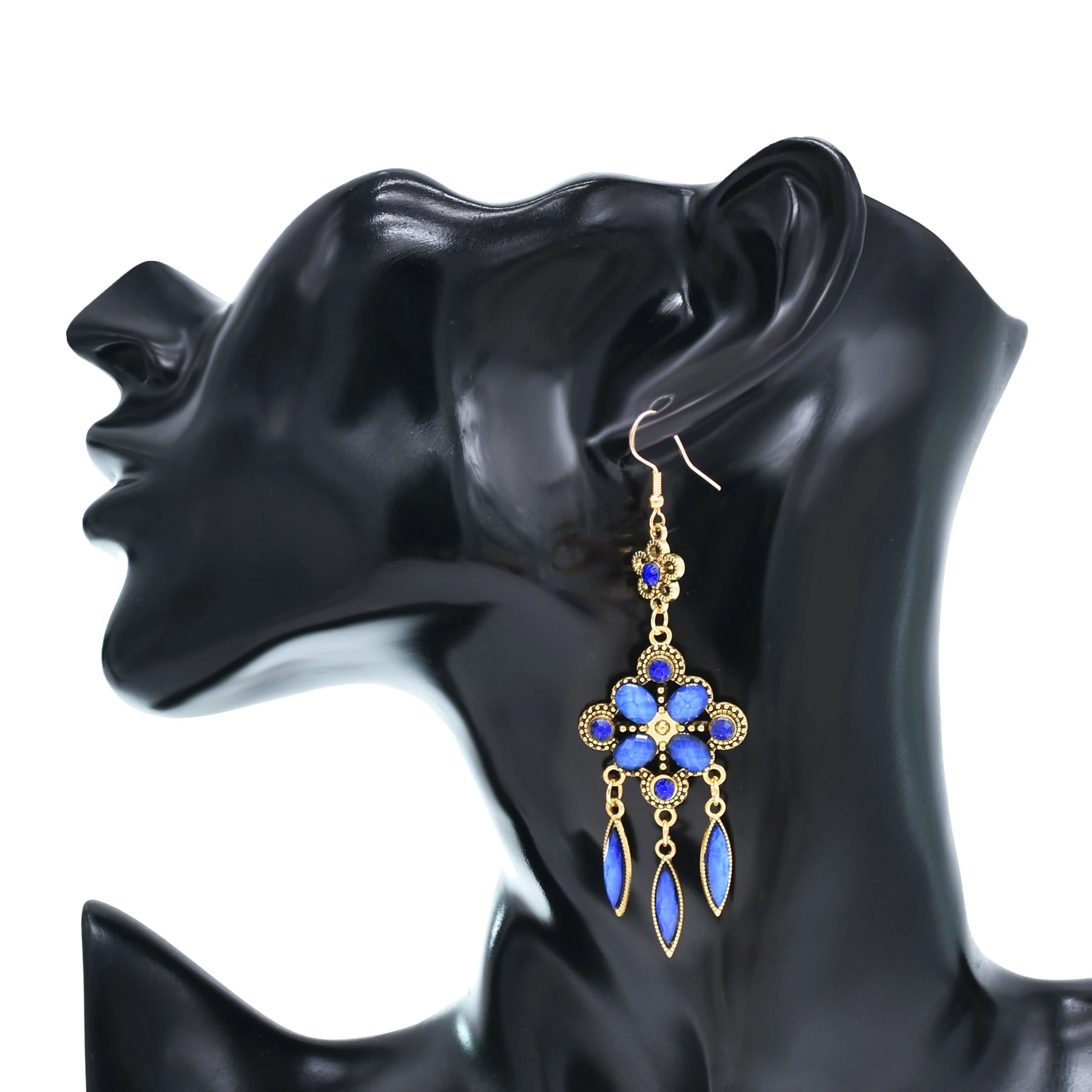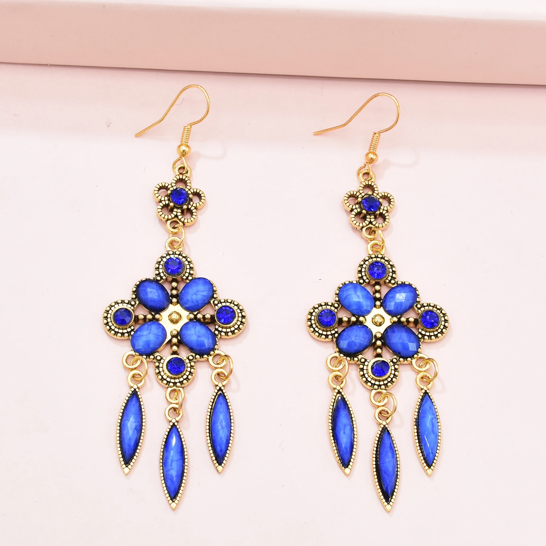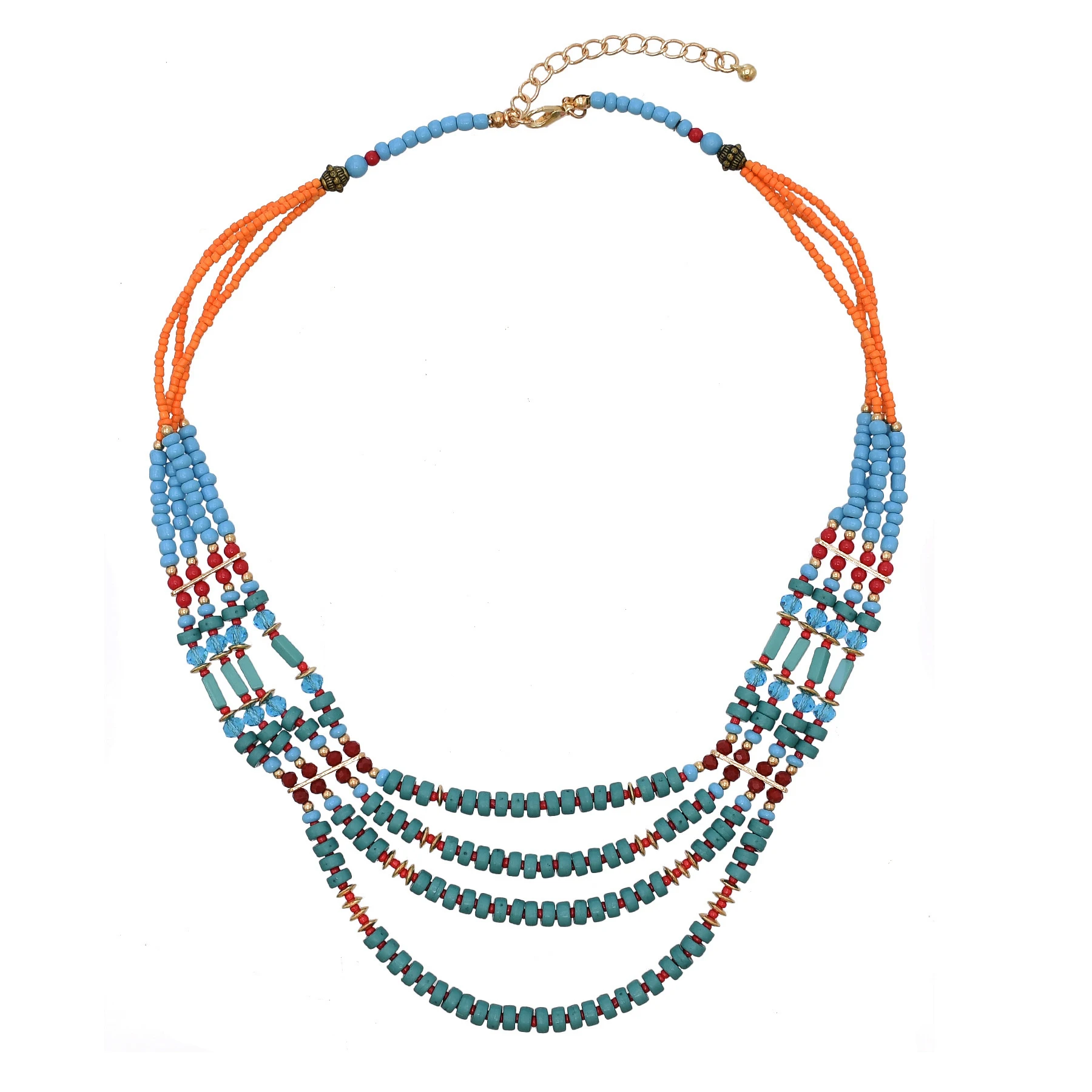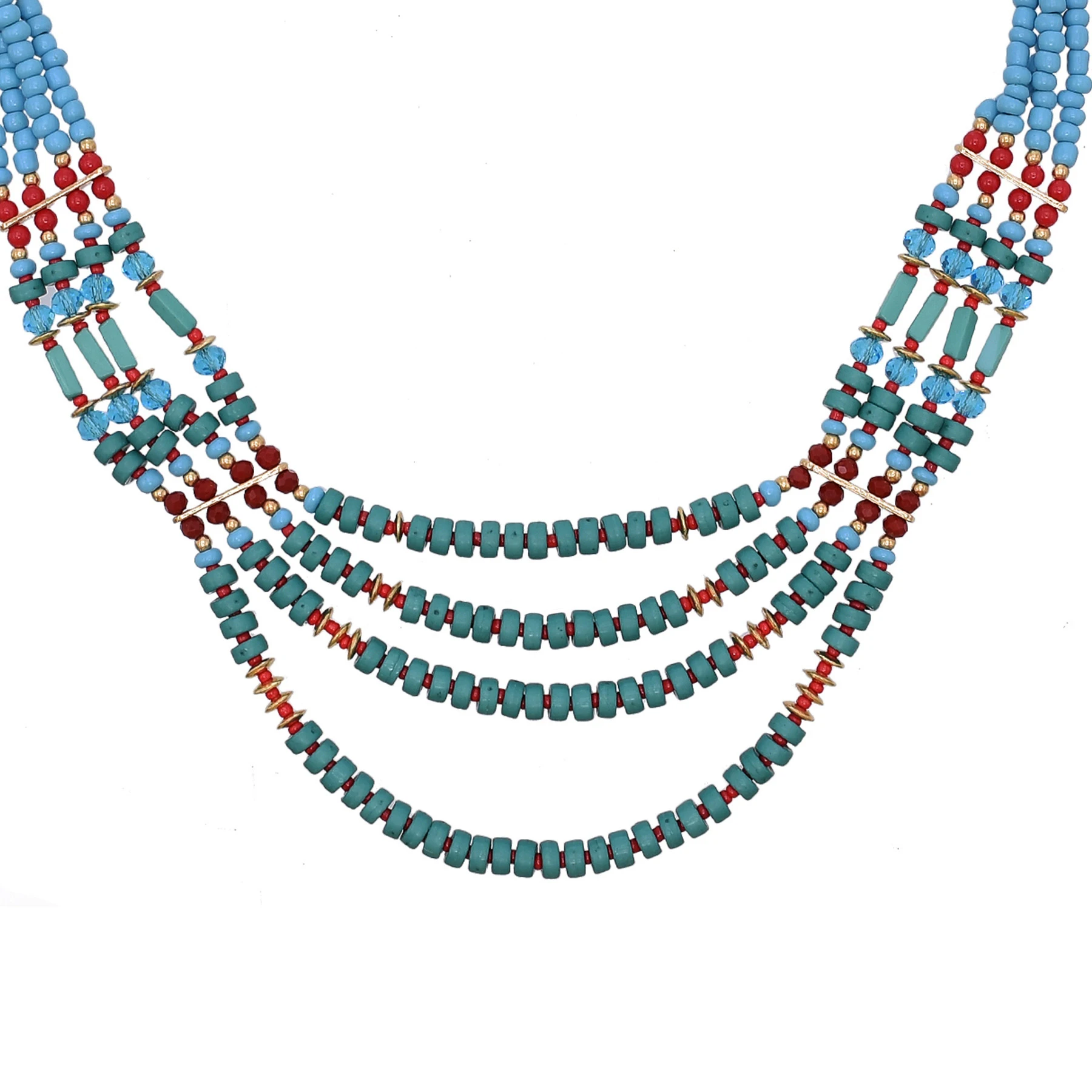 Vintage Turquoise Beaded Crystal Flower Headwear Necklace Earrings Exotic Bohemian Ethnic Bride Wedding Statement Jewelry Set