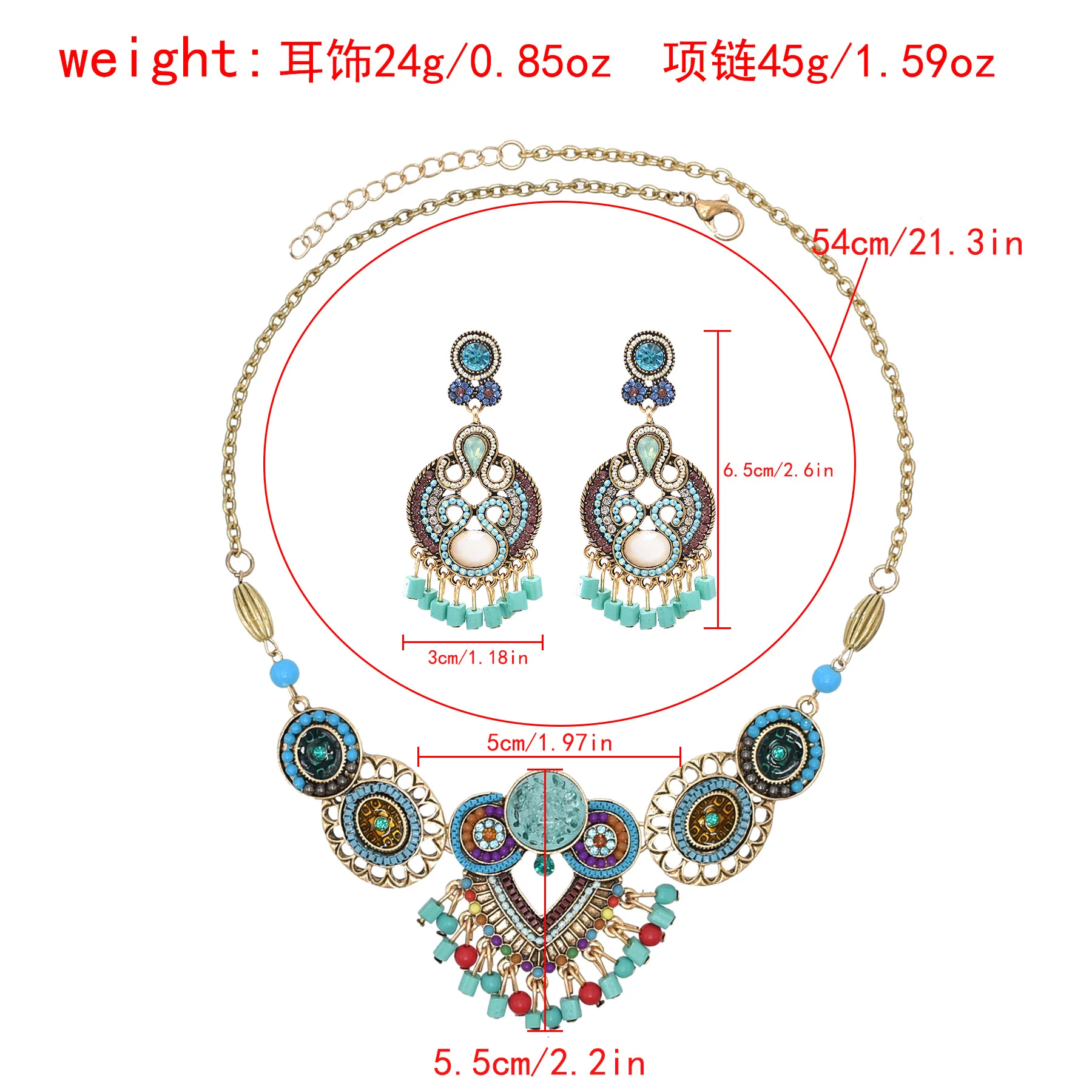 Product:Vintage Turquoise Beaded Crystal Flower Headwear Necklace Earrings Exotic Bohemian Ethnic Bride Wedding Statement Jewelry Set