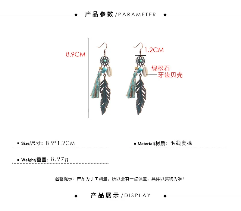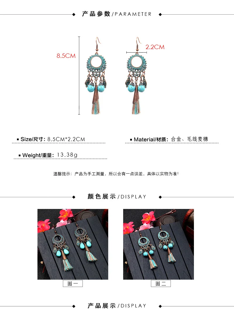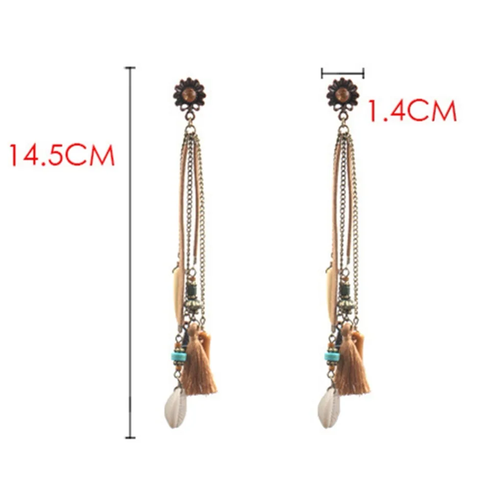 Women Fashion Bohemian Shell pendant Earrings Vintage Long Tassel Fringe Boho Dangle Earrings Morocco Turkish Earings Jewelry